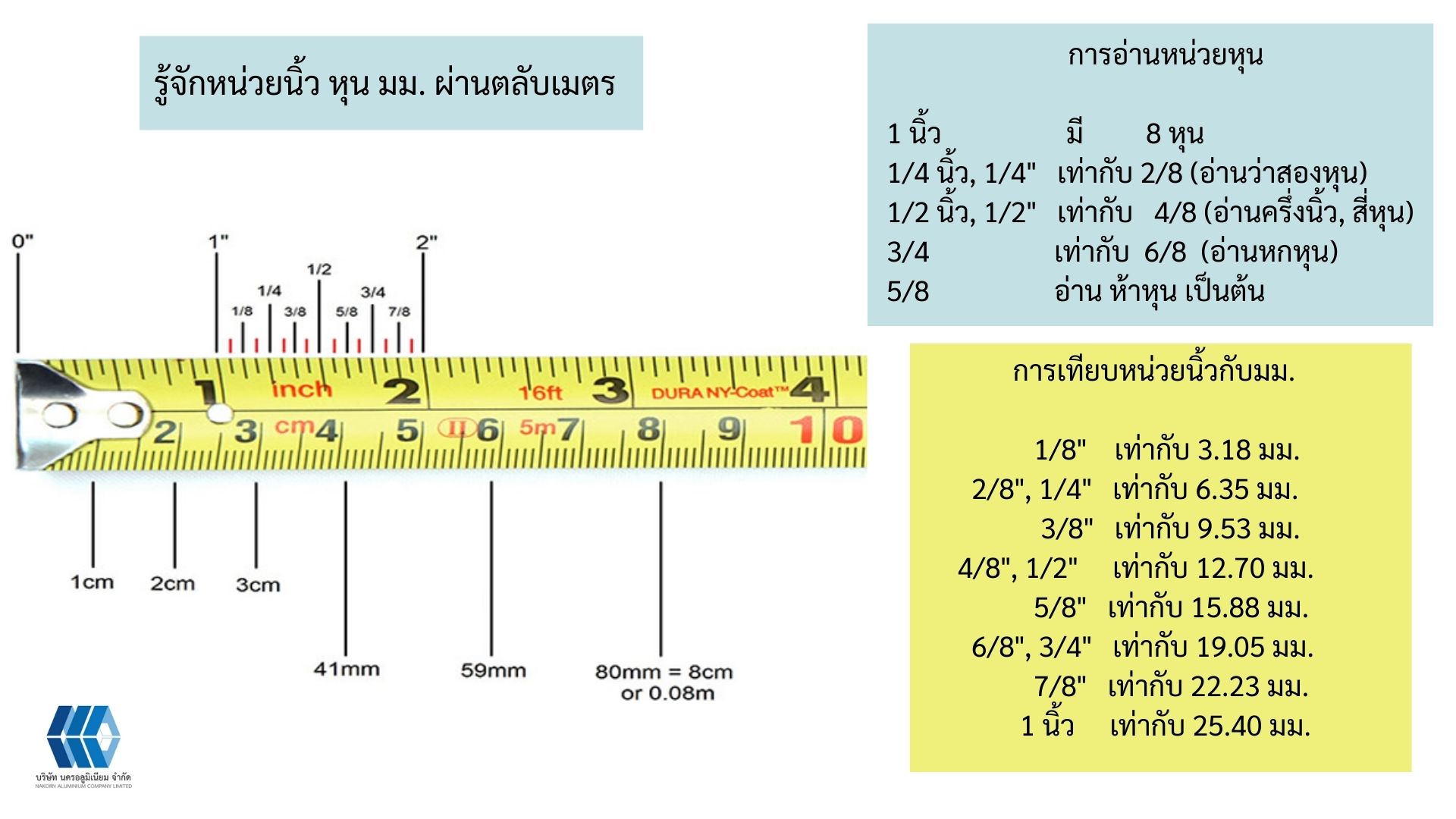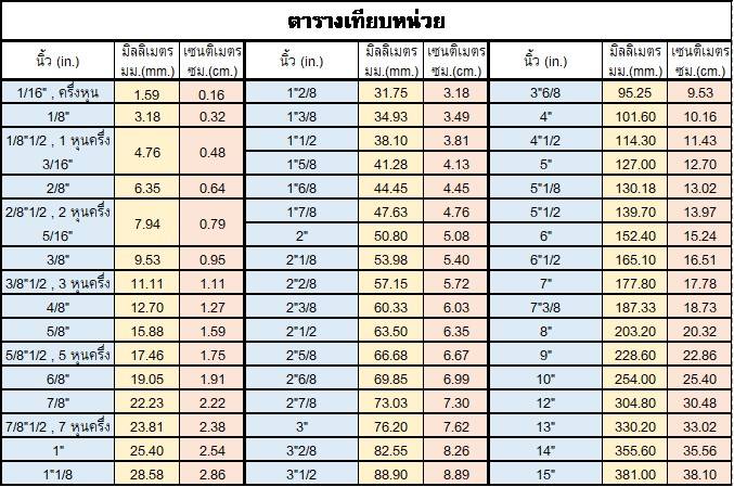 - หลักที่ควรจำ: 1 นิ้ว = 25.4 มม.